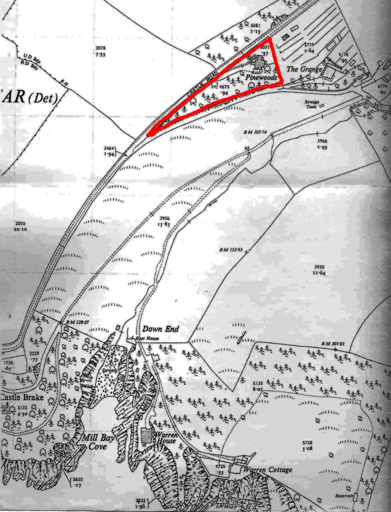 Mrs Abrey tells of a writer, name unrecalled, who rented Pinewoods in the 1940s and was one of the many contributors of Sexton Blake detective stories which were serialised, filmed and broadcast by radio over the first 70 years of the 20th century. At the end of the garden, with a grand view of the bay, are the ruins of a brick hut where he is said to have written his stories.