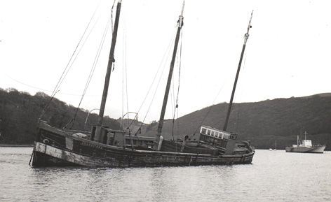 Does anyone know the full story of the schooner Invermoor of Dublin which sailed into Dartmouth around 1950 and ended up a sad wreck on the mud off Old Mill Creek? As I heard it, the ship was the centre of a romantic project to get twenty(?) people, each to contribute x thousands of pounds to fit her out and sail her to adventure in the “South Sea Islands”. Soon after the ship arrived in the river and was anchored just below Noss Point, her owner and instigator of the plan was taken ill and while he was lying in Brixham Hospital, the schooner broke adrift and was driven aground. She was never salvaged and lay