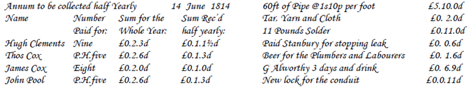 The Inhabitants of Kingswear liable to Pay for the Water at three pence & Public Houses Six pence per Annum to be collected half Yearly 14 June 1814