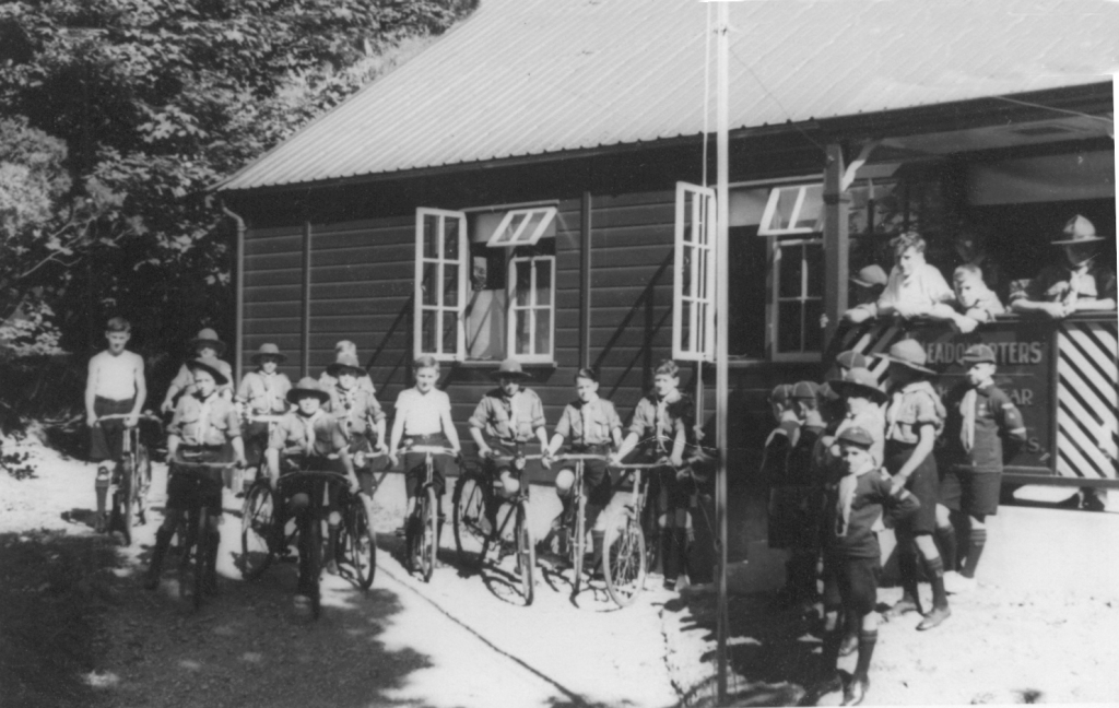 Cubs and Scouts outside the incredible Kingswear Scout Hut in 1937