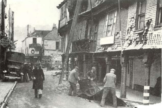 With the build up of American, British and forces of other nationalities in the area, in preparation for D-Day, an officers’ club was thought to be necessary in Dartmouth. The Merry Monarch Cafe, which was the building where the museum is now, and had been closed since the outbreak of war, had been completely renovated for this purpose. This had been done by a very aristocratic lady Mrs Colthurst and her daughter. The club had been fitted with up-to-date catering equipment and crockery. It was due to open on the day of the Duke Street bombing, but of course it was completely wrecked. Mrs Colthurst was not put off by this catastrophe, and she straight away found that what is now Cranfords (the Old Dartmouth Chronicle Shop) was empty, and she took it over. As soon as the bomb damage had been cleared up Cranfords was renovated using undamaged equipment from the Merry Monarch. The Officers’ Club opened there in due course, and continued until the end of war. After the war Mr Pikett ran it as a restaurant. No one seems to know anything of its history as an Officers’ Club.