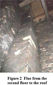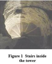 | The Kingswear tower has a circular stone staircase to the first floor, taking two full turns to get to the higher level. Earlier accounts report a fireplace on the first floor with a flue to the roof. The flue still exists and stretches from the ground floor to the top of the tower, figure 2. It is possible that the flue and the fireplace are later additions as, unlike the staircase, the flue is not built into the wall. Where the fireplace was is not clear. |