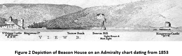 Figure 2 shows a panoramic view contained in an Admiralty chart of Dartmouth Harbour dating from 1853 but with corrections up to 1880. It shows both a lighthouse and a separate mast light immediately below the house.