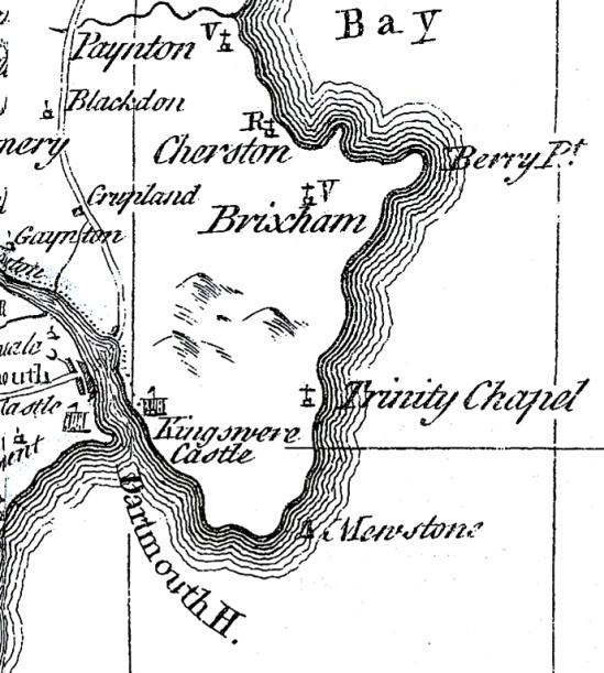Trinity Chapel was located at Coleton Farm in the parish of Kingswear since before 1258. Coleton was the seat of the local lord of the manor and, unlike Kingswear, is listed in the Domesday Book. For many years the chapel tower was used as a navigation aid to locate the entrance to Dartmouth harbour and when it fell down it was replaced by the present Day Mark.