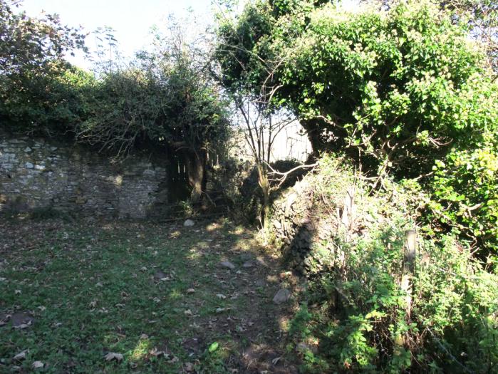 The site of the old house has been cleared but the south wing of the house, variously described as the servant’s quarters or a barn, remains figure 11. Opposite the wing, on the other side of the lane is an old wall exactly where the presumed site of Trinity Chapel should be, figure 12.